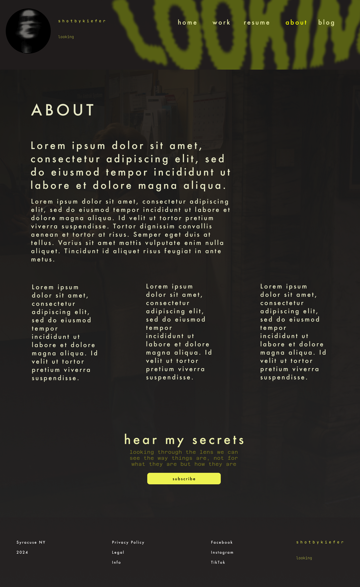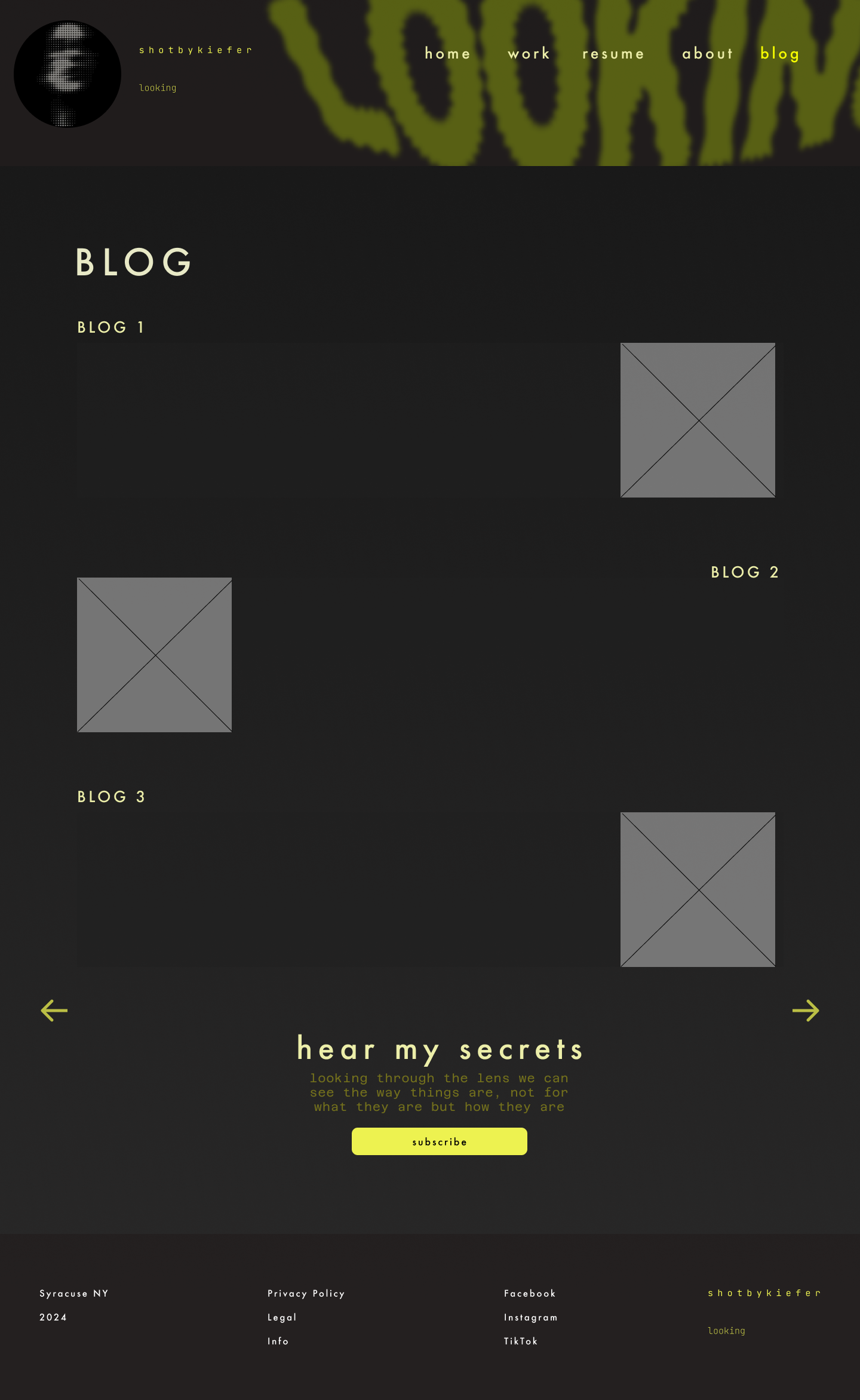 A mock website layout and user guide for a NY based photographer.